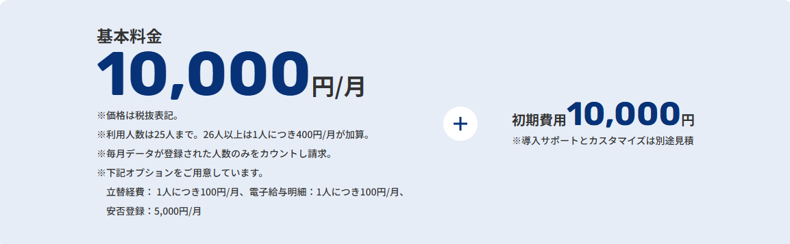 400円~ 最低利用料金10,000円(25人まで)。