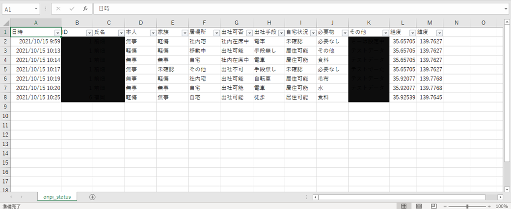 チャットに出力されたデータをCSV形式でダウンロードできます。 安否確認未回答者の把握や、確認項目ごとにフィルタを掛けて状態把握に活用できます。 自由に加工することで用途は多様に。