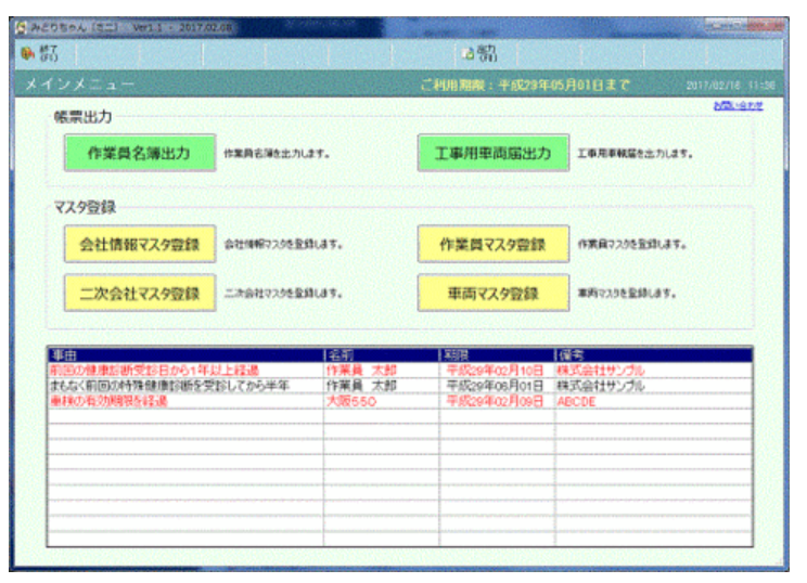 みどりちゃん(ミニ)は、建設業で必要な安全書類作成を「簡単に」「正確に」「効率よく」実現できるツールです。従来のEXCEL作業に比べて、作業員や案件が増えても一括管理でき、データの取り違いや記載漏れを防止。期限のある項目(健康診断・免許・車検など)は、警告表示機能により一目で把握可能。バタバタせず余裕を持った書類作成ができるようになります。建設現場の事務作業を軽減する、実践的なソリューションです。