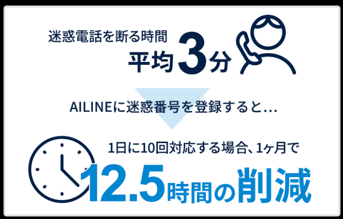 AILINEは、医療現場の電話応対を劇的に効率化するCTIシステムです。患者からの着信時に、画面上に自動で患者情報(名前、特性、注意事項など)を表示。新人スタッフでも適切な対応ができ、受付ミスや対応漏れを防げます。また、迷惑電話を自院で登録し管理できるブラックリスト機能も搭載。応対品質の均一化と時間ロスの削減を実現し、結果としてリピート率の向上や離反率の低下にもつながる“攻めのCTI”です。