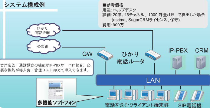 要問い合わせ(構成例:20席/16ch/1000件対応で約900万円)※SugarCRMライセンス含む