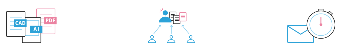 WebFileは大容量データを一斉配布・一斉収集でき、メール添付不可の設計図・動画も簡単に管理。収集用URLで複数相手からのアップロードも可能で、メール作業にかかる時間を数分に短縮します。