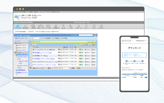 WebFileは、法人向けのセキュアなファイル送受信・共有・管理システムです。大容量(設計図・動画など)ファイルの配布・収集を一括で実現し、PPAP廃止の安全な運用、上長承認・パスワード・ダウンロード回数制限・IP制限など充実したセキュリティ機能を搭載。OutlookやChrome拡張、PCクライアント同期も可能で、業務プロセス全体の効率と安全性を向上します。220社超の導入実績あり。
