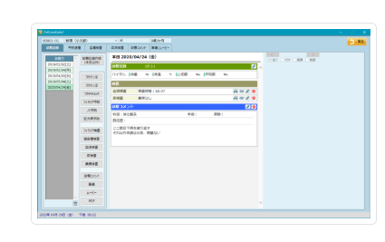 SOAP形式による診察入力に対応し、カルテ記録から処方、明細作成、ワクチン接種証明書発行までを同一画面で操作可能。過去履歴表示や複数ペットの明細作成で、診察業務を直感的に効率化します。