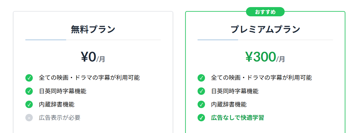 基本無料。広告なし・字幕自動再生を可能にするサブスクリプション:月額300円(初月無料トライアルあり)。