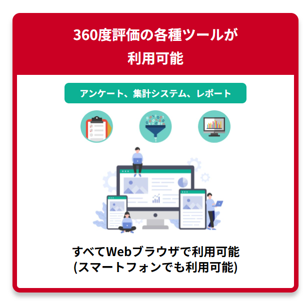 クラウド上で評価の設計・実施・分析までを一元管理でき、運用負担を大幅に削減。自動レポート機能により、結果を即座に可視化できるため、評価後の振り返りやフィードバック面談もスムーズに行えます。人事業務のDXにも貢献します。