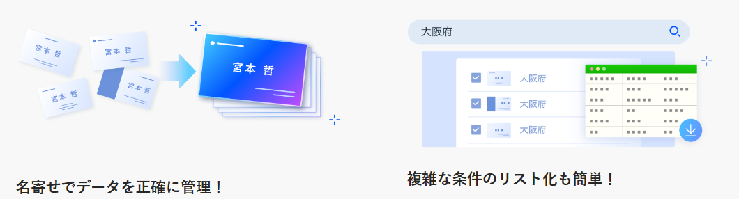 クラウド型(SaaS)名刺管理サービス。個人向けEightと連携し、チーム単位での利用が可能。スマホアプリ対応。導入敷居が低く、中小企業にも適応。