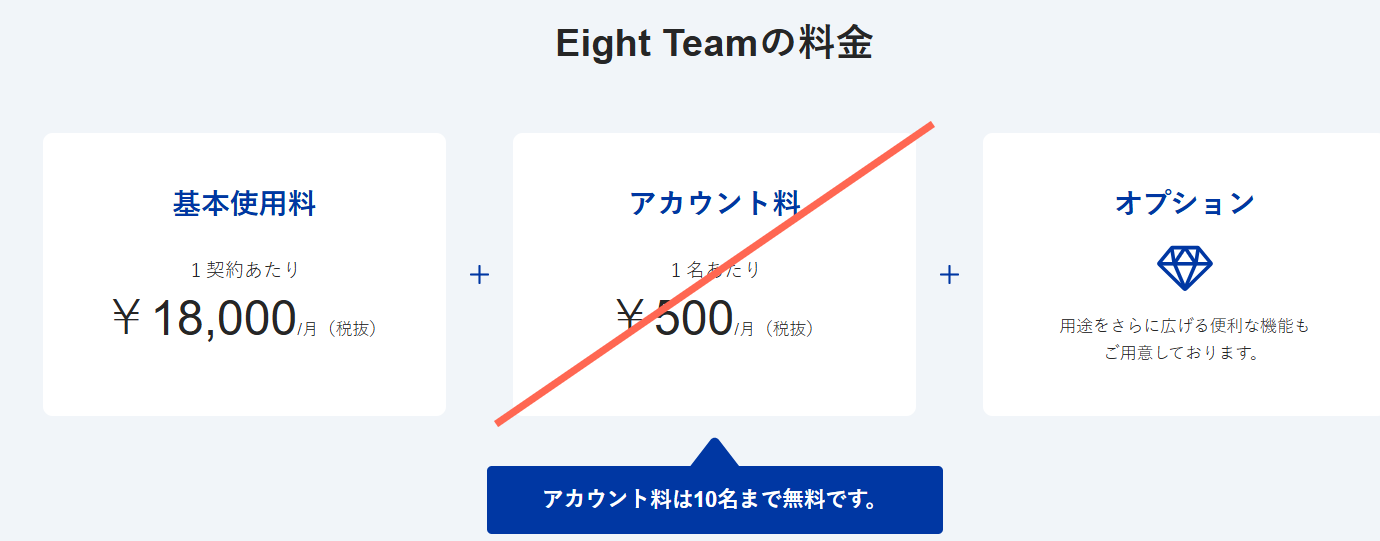 10名までアカウント料無料で提供。詳細はお問い合わせが推奨されています。