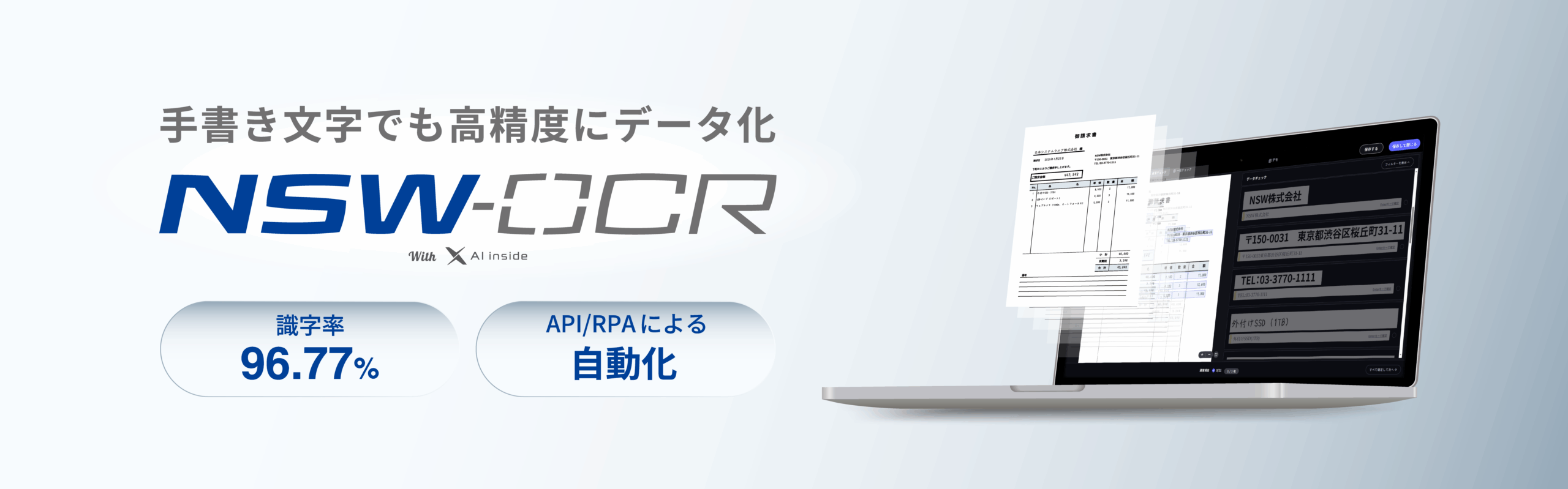 NSW-OCRは手書き書類や帳票の文字を識別し、自動でデータ化するAI-OCRサービスです。