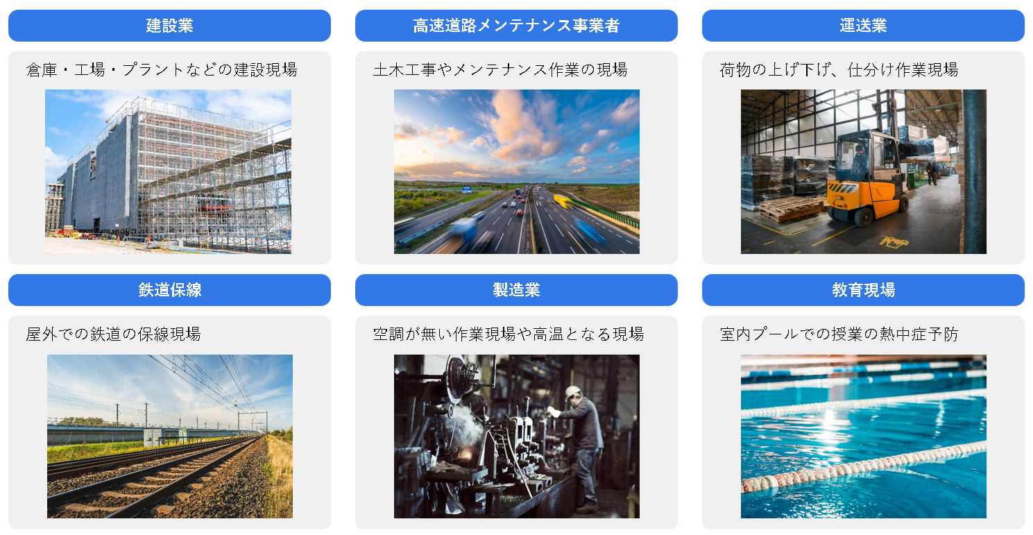 線路保全業務は屋外での作業が中心です。特に夏の時期は炎天下での作業のとなり、作業員の健康管理のためにも、熱中症予防を実施する必要があります。従来は作業現場から離れた本部では現場の熱中症指数(WBGT)を把握することが出来ず、現場からの連絡のみでした。 そのような中、WBGTセンサーの性能・品質向上やIOTサービスの実現により現場担当者と連絡を取らなくても本部側でリアルタイムにWBGT値を把握が可能となっています。 小中学校の体育、プール、部活動での活用事例も増えています。