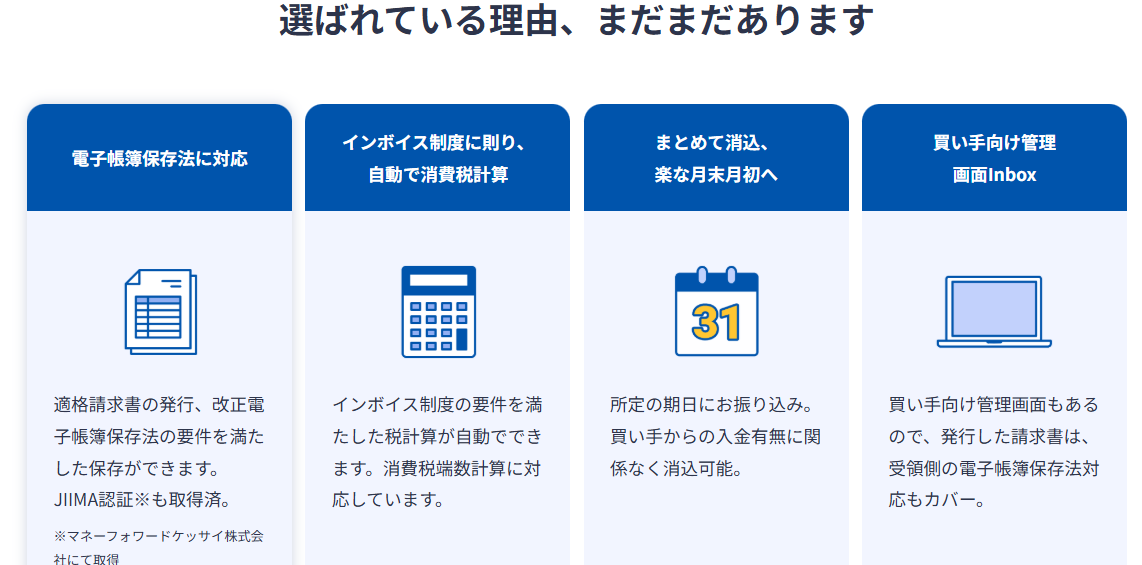 マネーフォワード掛け払いは、企業間取引における請求業務を代行し、与信審査・請求書発行・入金管理・督促までを一括で担うサービスです。入金保証機能により貸倒れリスクをゼロにし、取引先の与信審査もオンラインで即時に実施可能。請求データをアップロードするだけで、請求業務にかかる工数を大幅に削減できます。また、売掛金を早期に資金化できる「アーリーペイメント」にも対応しており、キャッシュフロー改善にも役立ちます。マネーフォワードの会計ソフトなど他サービスとの親和性も高く、バックオフィス全体の効率化に寄与します。