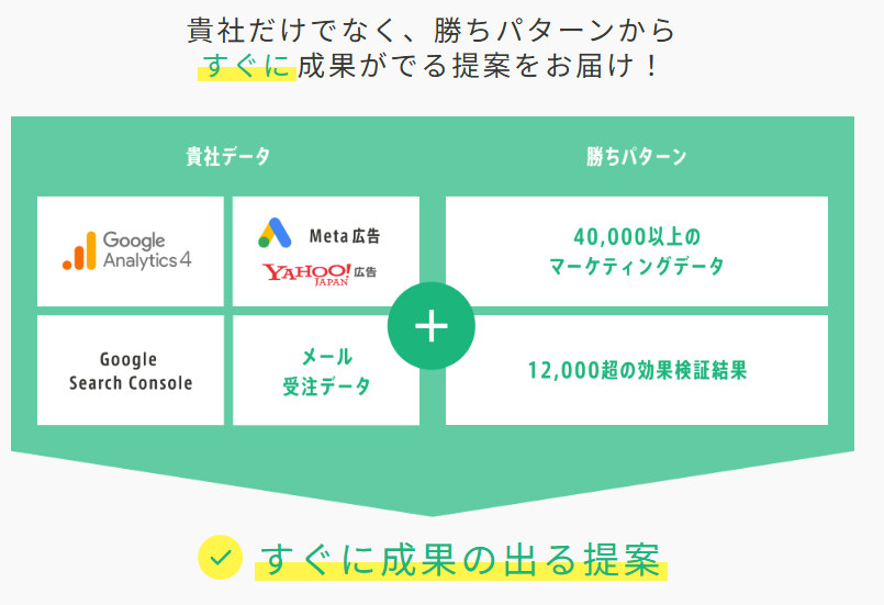 ツールの提供だけでなく、専門コンサルタントによる伴走支援や改善施策の実行代行も可能。社内で実行リソースが不足していても、改善のPDCAを止めずに回せる体制を整えます。人材マッチングサービス「MarketerAgent」との連携もあり、外部マーケターを活用した体制強化もできます。([wacul-ai.com](https://wacul-ai.com/service-cop/marketer-agent/?utm_source=chatgpt.com))
