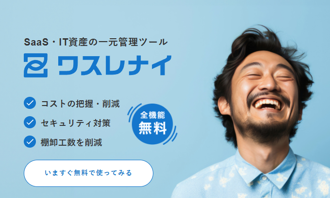 WASURENAI は、SHIFT株式会社が提供する SaaS/IT資産管理ツールで、アカウント数・契約情報・利用状況の可視化、影響力のある「シャドー IT」や未使用アカウントの検知、利用者の入退社に伴うアカウントの作成・削除の自動化などをサポートします。社内でどの SaaS が使われているか見えにくい問題を解決し、コスト削減・セキュリティ強化・業務標準化を支援することを目的としています。