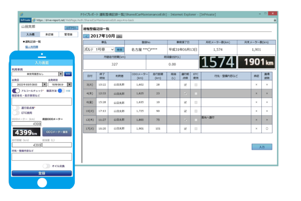 クラウド型運転記録システム。PC・スマホ(iOS/Android)対応。