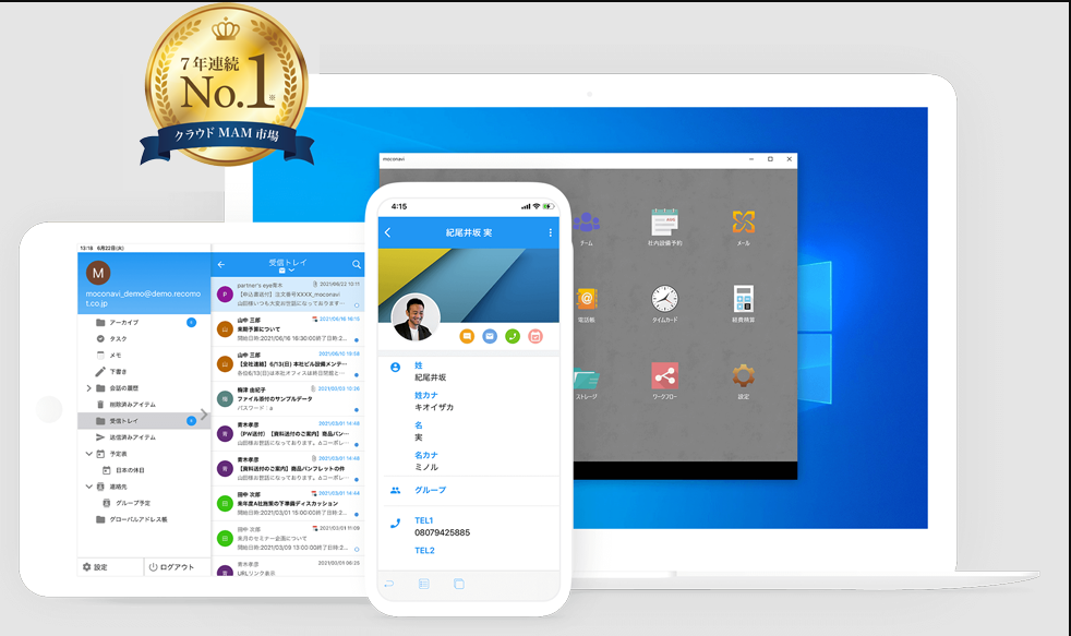 moconaviは、クラウドMAM市場シェアNo.1を誇るリモートアクセスサービスです。VPN不要で社内システムやクラウドサービスに安全に接続でき、端末にデータを残さない仕組みで情報漏洩リスクを防止します。電話・メール・チャット・カレンダー・ストレージなど50以上の機能を提供し、1,700社・33万ID以上で利用されています。導入も最短5営業日とスピーディーで、テレワークやモバイルワークの生産性を高めます
