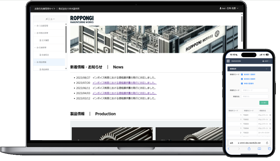 MONO-X Oneは、受発注、在庫管理、納期確認、出荷登録など企業間取引に必要な業務をオンラインで完結。リアルタイムで情報を共有でき、欠品リスクや取引遅延を防止します