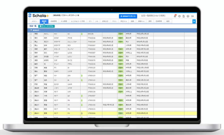 スコラプラスは、入退会手続きや会費管理、出席簿、欠席・振替対応など、スクール運営に必要な事務作業を一元管理します。キャッシュレス決済や口座振替に対応し、集金業務の手間とミスを削減。保護者との連絡もシステムから簡単に行え、現場スタッフの負担を軽減します。