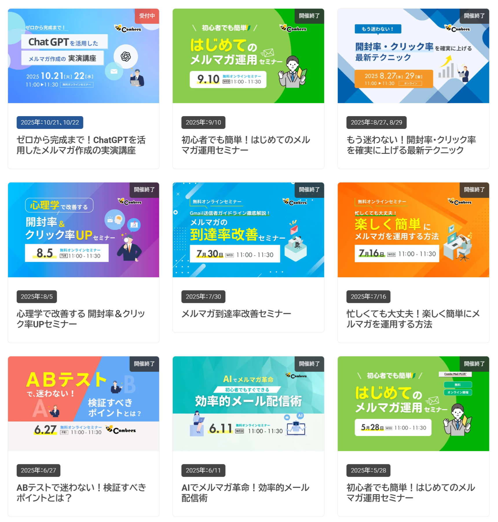 運用のコツや配信ノウハウを学べる無料オンラインセミナーを定期開催中。 「メール配信が初めての方」や「効果をもっと高めたい方」に向けて、実践的なノウハウをわかりやすく解説しています。