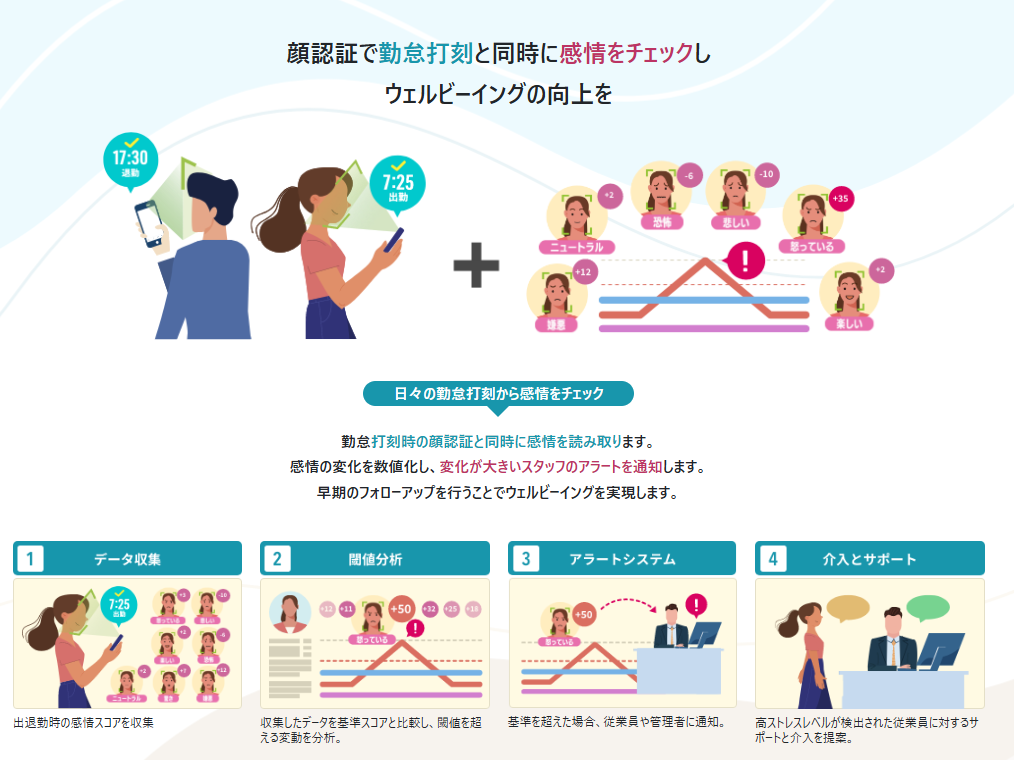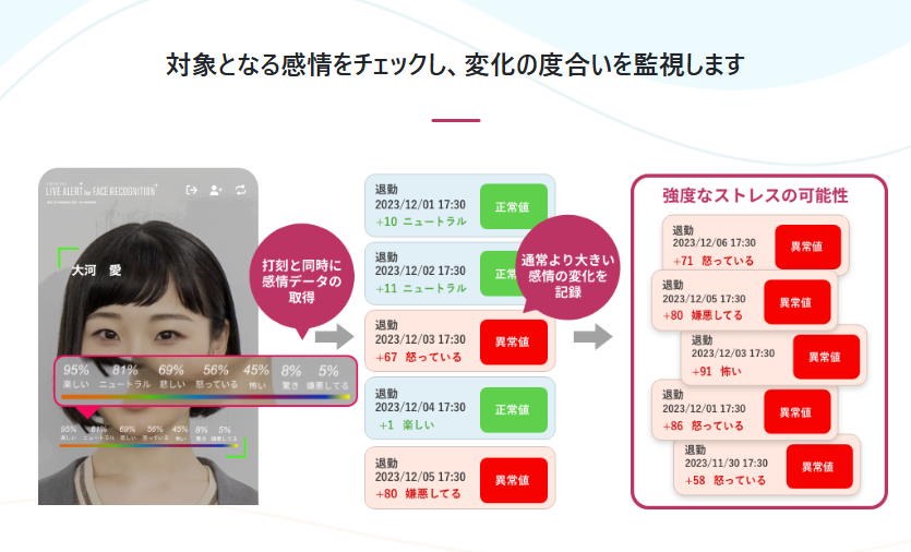 顔パスストレスチェッカーは、顔の表情や特徴からストレス状態を瞬時に分析します。AIが解析を行い、ストレスのレベルをわかりやすく表示。家族や友人との心の健康をチェックするために、手軽に写真を撮るだけで結果を得られます。