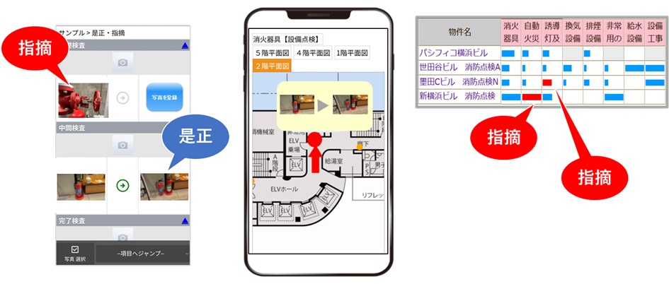 ・指摘や問題点がある現場や箇所も一目で把握できます。