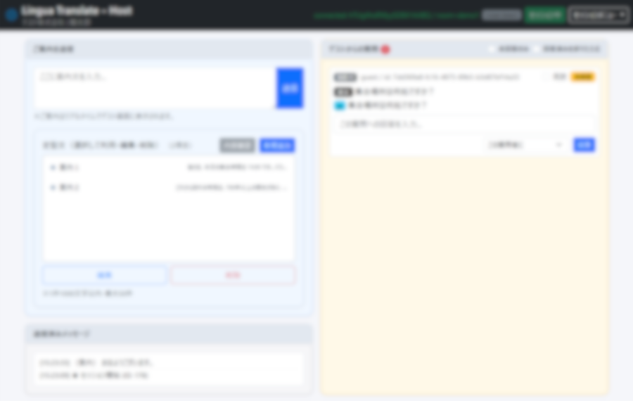 Lingua Translate は、外国人社員・技能実習生・特定技能人材を受け入れる企業向けに、研修・説明業務を効率化する仕組みを提供します。 日本人講師は日本語で説明するだけで、受講者は自分の言語で内容を理解できます。 研修内容や説明文、翻訳結果は履歴として保存されるため、「説明した/聞いていない」といったトラブルを防止。 さらに、外国人社員からの質問とその回答も履歴管理でき、研修品質の平準化が可能です。 定型文登録を活用すれば、安全指示や作業手順などを繰り返し利用でき、講師・管理者の負担を大きく軽減します。